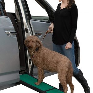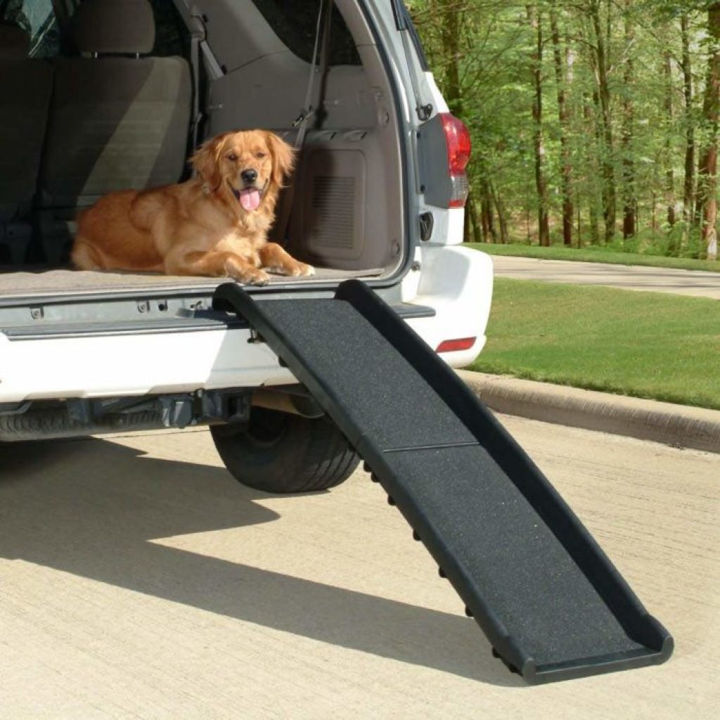 Best dog ramp is happy riding ramp it simple to use it foldable you can easily carry with you it helps your friend to get out of the cars or any height place its no slippery surface your dog will not slip while walking.